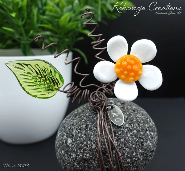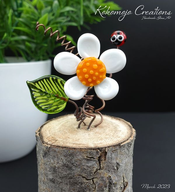 All our plant stakes are handcrafted using traditional flameworking techniques of sculpting molten glass. These plant stakes are securely perched on top of our standard 8” polished stainless steel rod.