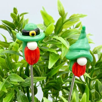 Glass leprechauns on stainless steel rods.