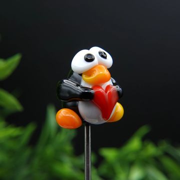 Glass penguin on a stainless steel rod.